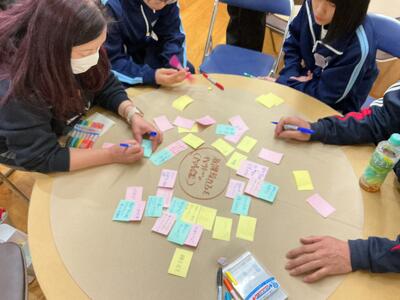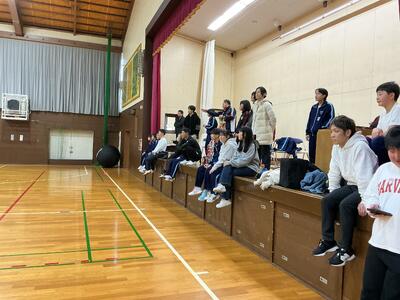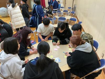 試合の合間にステージでは・・・来年度の和田中の活性化のために熟議中👀